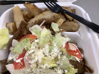 As for my salad, you can clearly see the tomato slices, lettuce, and maybe you can see the onion slices, so obviously it is a salad not a gyro plate. Just the kind of comfort food, I mean salad, a tired teacher needed. 🙂