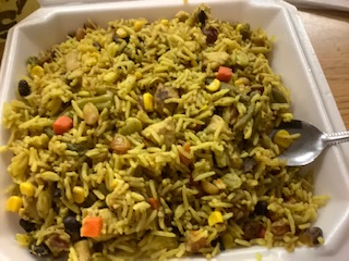 I woke up sluggish this morning, which is nothing new for me. It is Friday, so it is injection day for methotrexate. I had planned on rewarding myself with a delivery cheeseburger and fries, but something much better came my way. One of the moms in my morning class gave me some briyani.