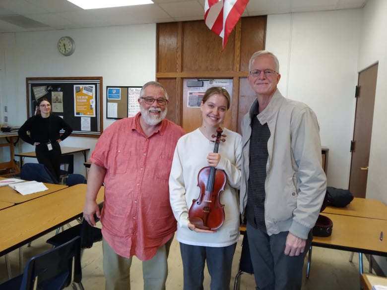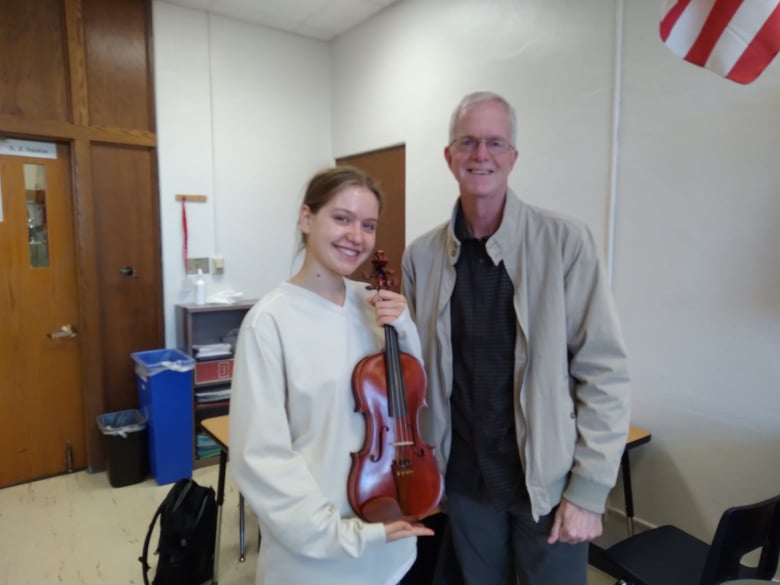 This is Ester receiving her violin. Look at her beaming smile.