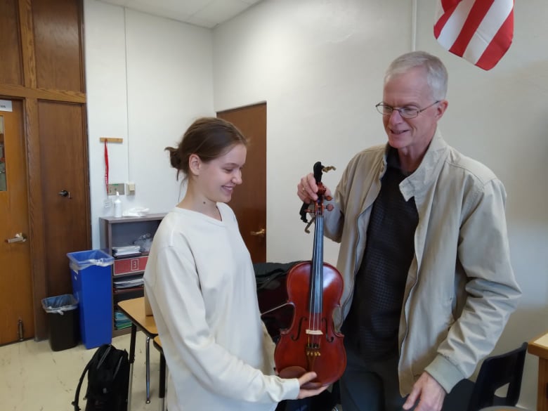 This is Ester receiving her violin. Look at her beaming smile.