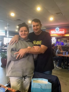 He was finishing up helping a new family from Ukraine. He started to apologize suggesting maybe we could meet for coffee, but I told him to come now. He finally arrived with his wife Ruslana- 45 minutes late. We were happy to wait for him to bless and surprise him.