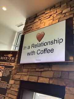 We were seated in front of a video screen that showed slides of coffee memes. So I took pictures of them to share. Can you guess which one is my favorite?