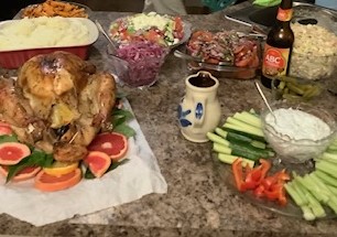 Ruslana had never cooked turkey before she came the to USA and yet, she can cook it so it is moist not dry. There was no need to any grave. However, she made a cranberry sauce that was quite tasty to eat with the turkey.